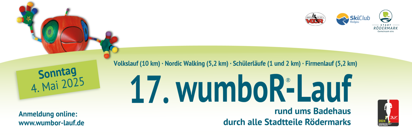 Die Vorbereitungen laufen auf Hochtouren: Zum 17. wumboR-Lauf laden die Stadt und die ausrichtenden Vereine, der in Rödermark beheimatete Skiclub Rodgau und der Volleyballclub Ober-Roden (VCOR), für Sonntag, 4. Mai 2025, ein. Er wird die Läuferinnen und Läufer in den verschiedenen Disziplinen und Altersklassen ab 9.30 Uhr „rund ums Badehaus durch alle Stadtteile Rödermarks“ führen. Start und Ziel sind vor dem Badehaus.